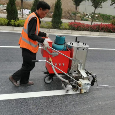 Before construction, the paint is boiled into a liquid with a preheater and poured into a road marking machine to begin scribing.